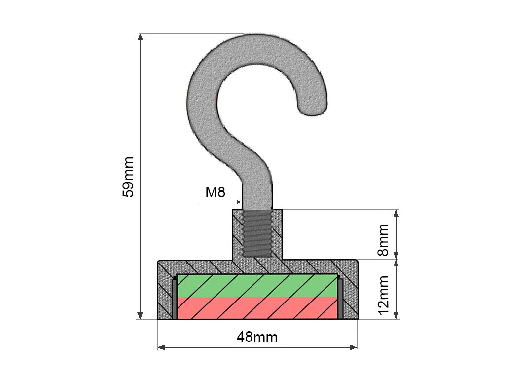 H-48-12 - AdatlapNEODYM Mágnesek | Mágneses rögzitéstechnika | Mágnes kampók, horgok |