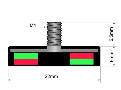 POT-S-G-22-6 - AdatlapNEODYM Mágnesek | Mágneses rögzitéstechnika | POT mágnesek gumibevonattal |