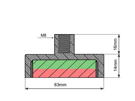 FR-POT-B-63-14 - AdatlapFERRIT Mágnesek | Mágneses rögzitéstechnika | POT mágnesek menetes hüvellyel |