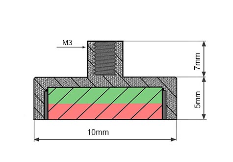 POT-B-10-5 - AdatlapNEODYM Mágnesek | Mágneses rögzitéstechnika | POT mágnesek menetes hüvellyel |