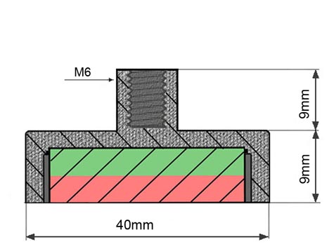 POT-B-40-9 - AdatlapNEODYM Mágnesek | Mágneses rögzitéstechnika | POT mágnesek menetes hüvellyel |